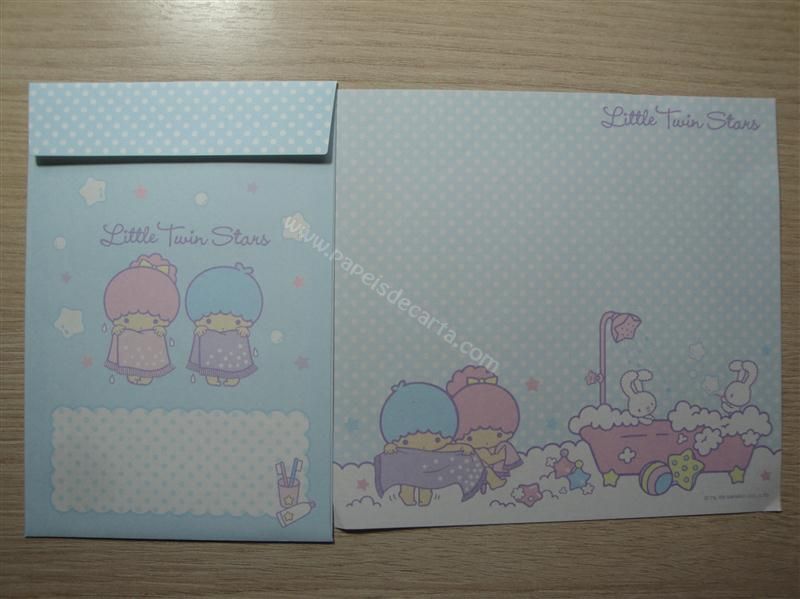 Conjunto importado, de papel de carta com 1 folha e 1 envelope dos Little Twin Stars.