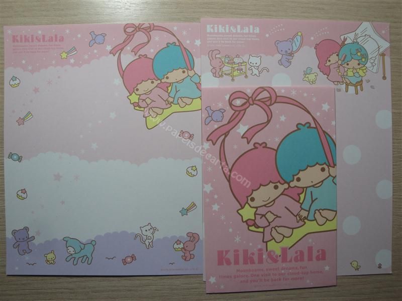 Conjunto importado, de papel de carta com 2 folhas diferentes e 1 envelope dos Little Twin Stars.