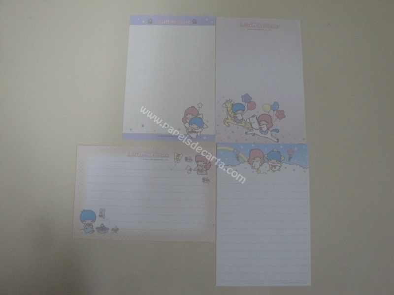 Conjunto importado, de papel de carta com 4 notinhas diferentes dos Little Twin Stars.