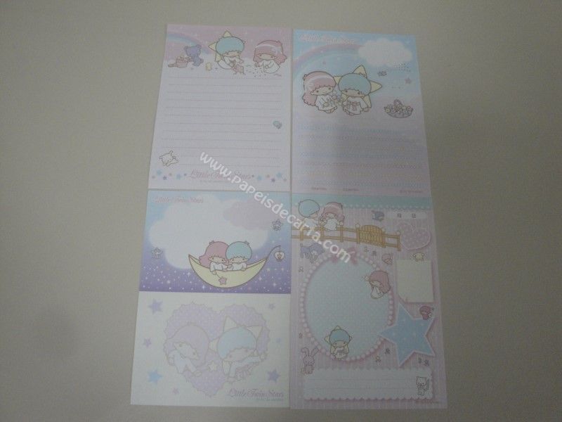 Conjunto importado, de papel de carta com 4 notinhas diferentes dos Little Twin Stars.