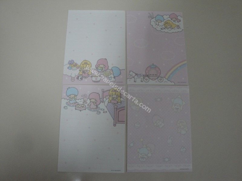 Conjunto importado, de papel de carta com 4 notinhas diferentes dos Little Twin Stars.