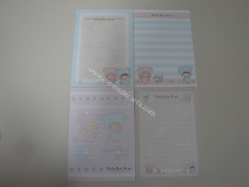 Conjunto importado, de papel de carta com 4 notinhas diferentes dos Little Twin Stars.