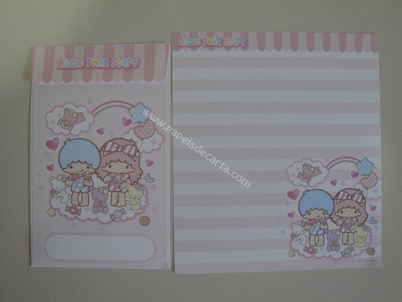 Conjunto importado, de papel de carta dos Little Twin Stars, com 1 folha e 1 envelope, da Sanrio.