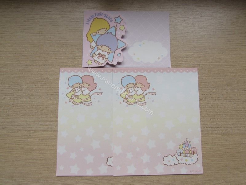 Conjunto importado de papel de carta dos Little Twin Stars, com 2 folhas iguais e 1 envelope, da Sanrio. Fabricante: Sanrio