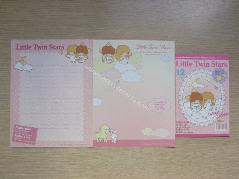 Conjunto importado de papel de carta dos Little Twin Stars, com 2 folhas diferentes e 1 envelope, da Sanrio. Fabricante: Sanrio.
