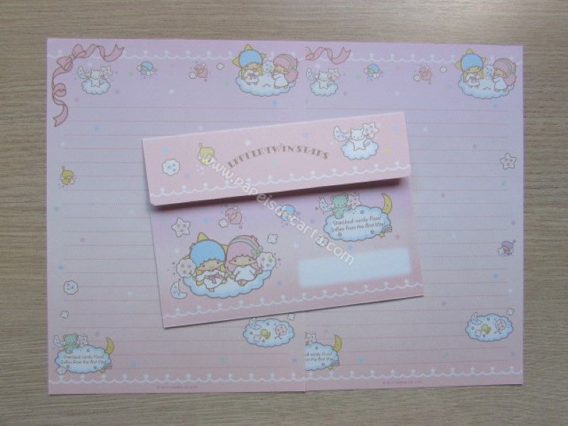 Conjunto importado de papel de carta dos Little Twin Stars, com 2 folhas iguais e 1 envelope, da Sanrio. Fabricante: Sanrio.