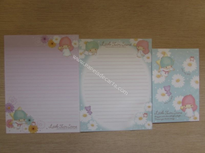 Conjunto importado de papel de carta dos Little Twin Stars, com 2 folhas diferentes e 1 envelope, da Sanrio. Fabricante: Sanrio.