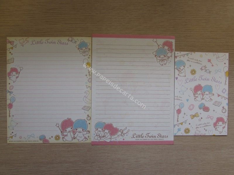 Conjunto importado de papel de carta dos Little Twin Stars, com 2 folhas diferentes e 1 envelope, da Sanrio. Fabricante: Sanrio.
