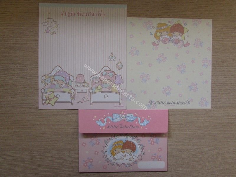 Conjunto importado de papel de carta dos Little Twin Stars, com 2 folhas diferentes e 1 envelope. Fabricante: Sanrio.