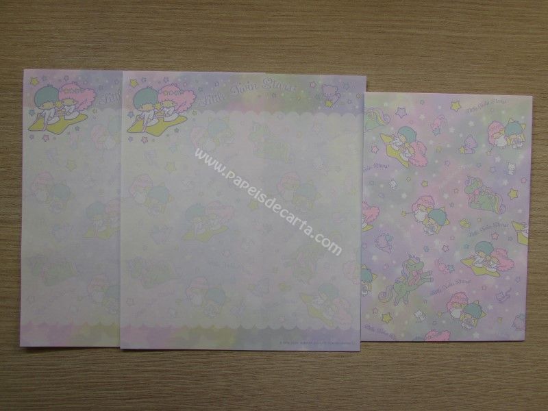 Conjunto importado de papel de carta dos Little Twin Stars, com 2 folhas iguais e 1 envelope. Fabricante: Sanrio.