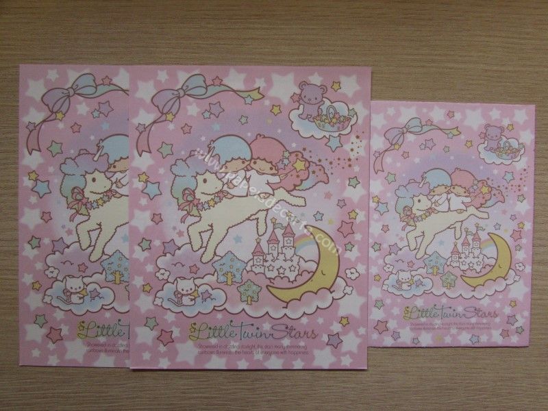 Conjunto importado de papel de carta dos Little Twin Stars, com 2 folhas iguais e 1 envelope. Fabricante: Sanrio.