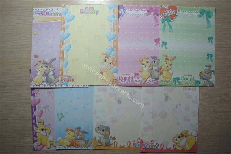 Conjunto importado, de papel de carta com 8 notinhas diferentes da Miss Bunny.