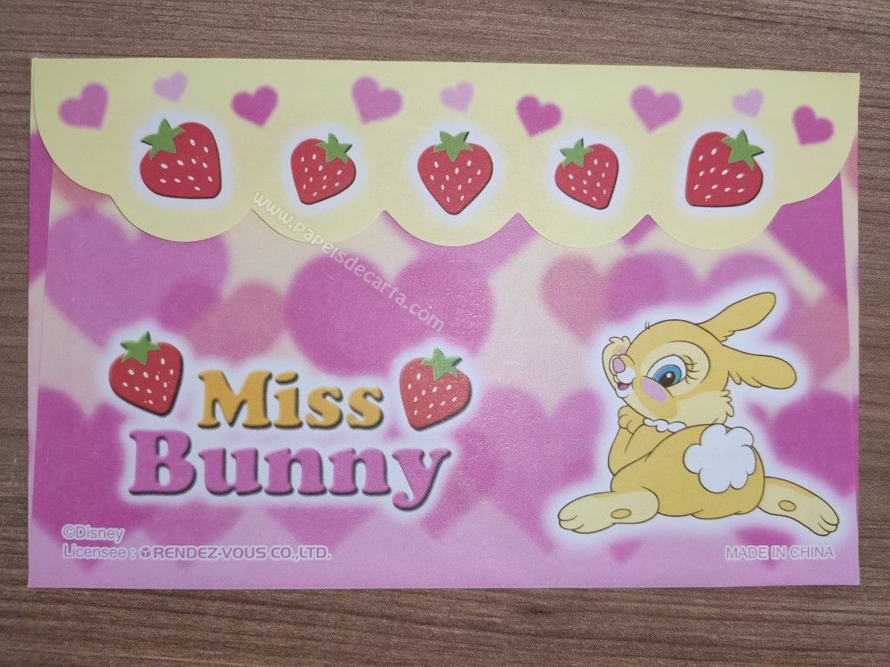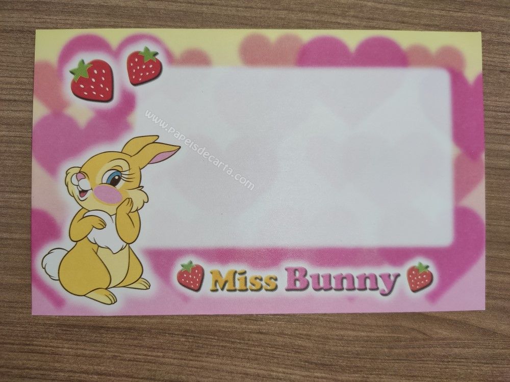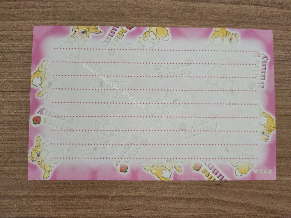 Conjunto importado, de papel de carta da Miss Bunny, com 2 folhas, sendo 1 tamanho médio e 1 pequena e 1 envelope, da Disney.