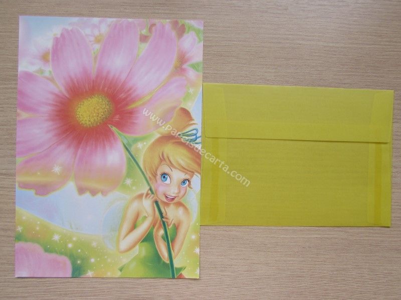 Conjunto de papel de carta importado e raro com 1 folha e 1 envelope da Tinker Bell, tamanho médio.