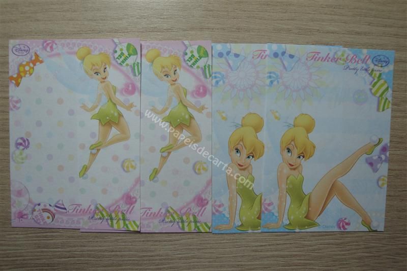 Conjunto importado, de papel de carta com 4 notinhas(sendo 2 modelos diferentes) da Tinker Bell.