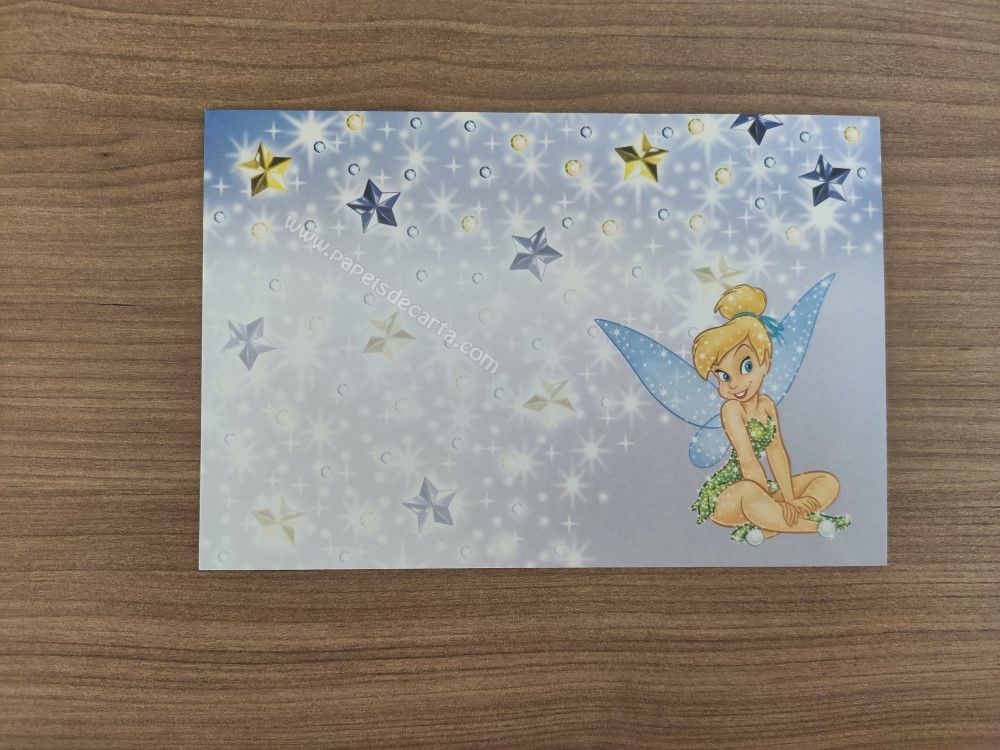 Conjunto importado, de papel de carta da Tinker Bell (Sininho), com 1 folha e 1 envelope, da Disney. TAMANHO DO PAPEL: ALT: 30cm - LARG: 21cm
