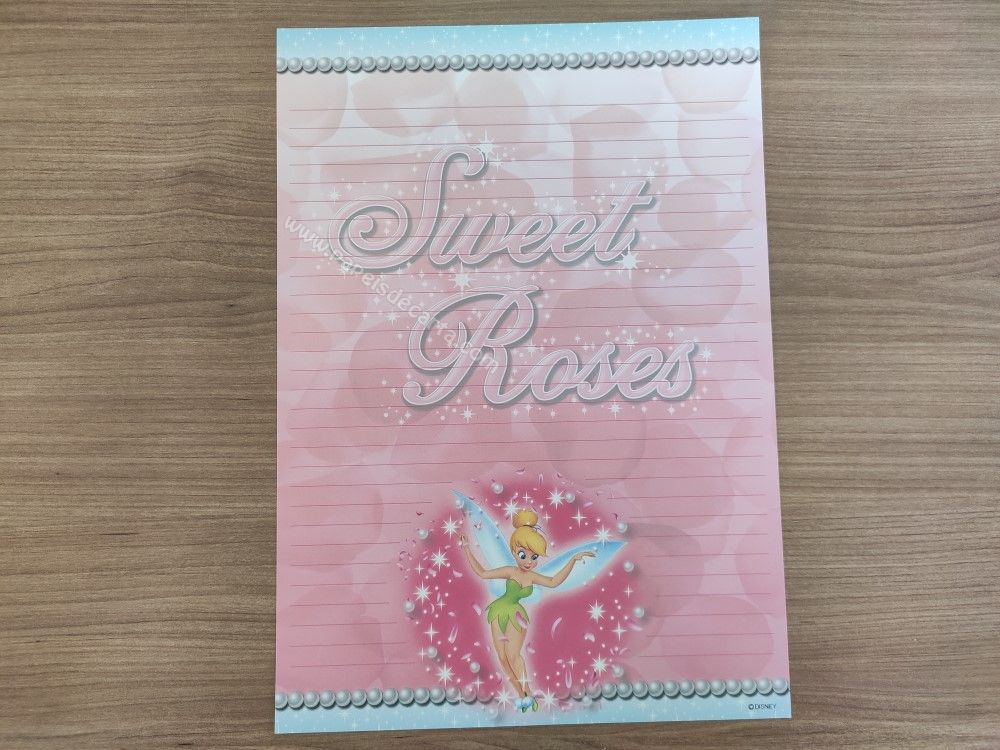 Papel de carta grande da Tinker Bell (Sininho), da Disney. TAMANHO DO PAPEL: ALT: 25,5cm - LARG: 18cm