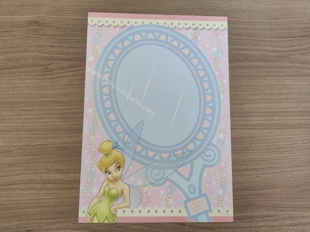Papel de carta médio da Tinker Bell (Sininho), da Disney. TAMANHO DO PAPEL: ALT: 22cm - LARG: 15cm