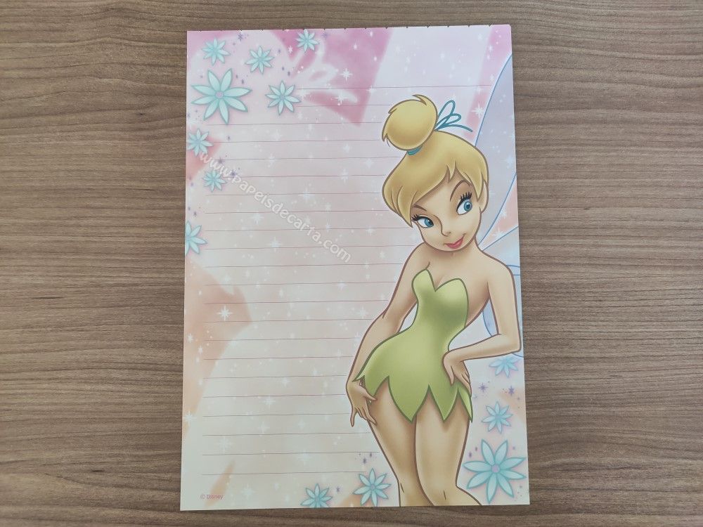 Papel de carta médio da Tinker Bell (Sininho), da Disney. TAMANHO DO PAPEL: ALT: 22cm - LARG: 15cm