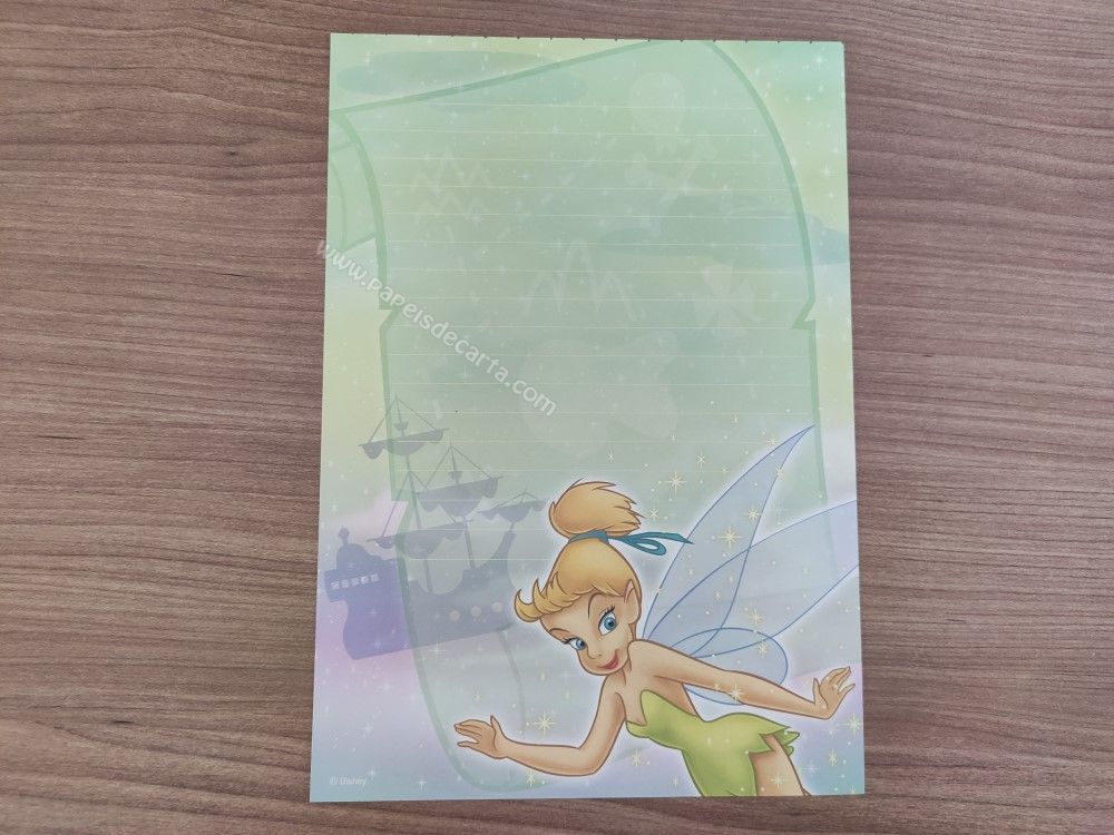 Papel de carta médio da Tinker Bell (Sininho), da Disney. TAMANHO DO PAPEL: ALT: 22cm - LARG: 15cm