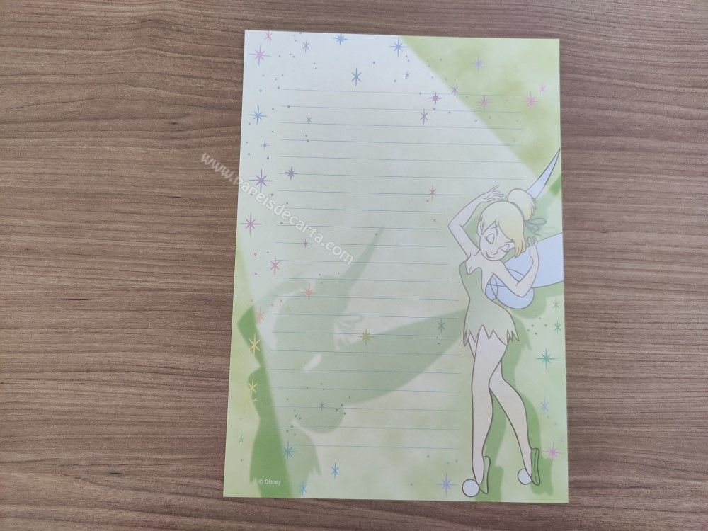Papel de carta médio da Tinker Bell (Sininho), da Disney. TAMANHO DO PAPEL: ALT: 22cm - LARG: 15cm