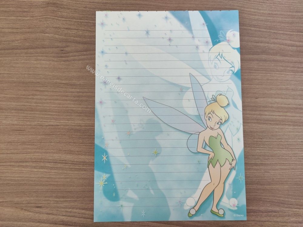 Papel de carta médio da Tinker Bell (Sininho), da Disney. TAMANHO DO PAPEL: ALT: 22cm - LARG: 15cm