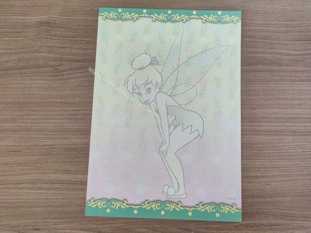 Papel de carta médio da Tinker Bell (Sininho), da Disney. TAMANHO DO PAPEL: ALT: 22cm - LARG: 15cm