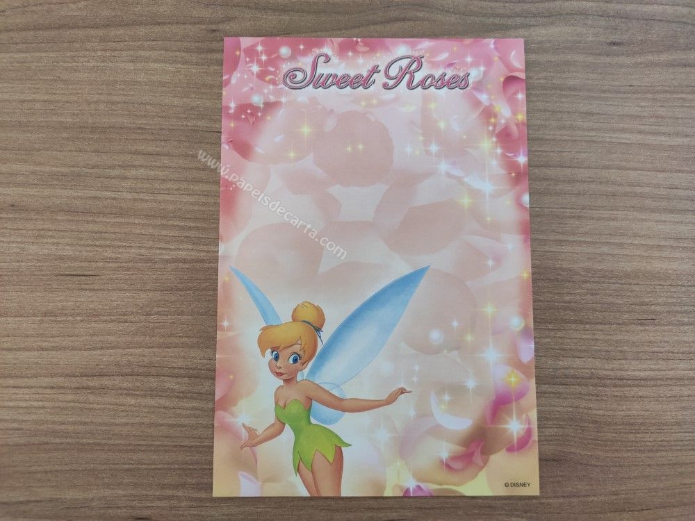 Papel de carta pequeno da Tinker Bell (Sininho), da Disney. TAMANHO DO PAPEL: ALT: 14,5cm - LARG: 10cm