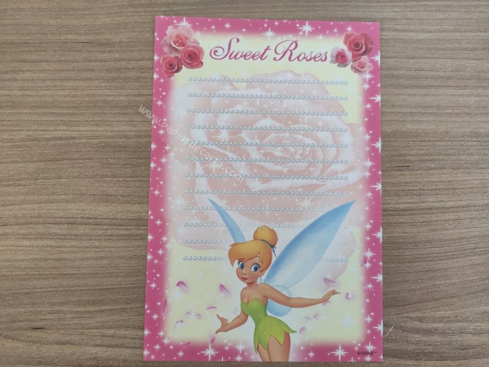 Papel de carta pequeno da Tinker Bell (Sininho), da Disney. TAMANHO DO PAPEL: ALT: 14,5cm - LARG: 10cm