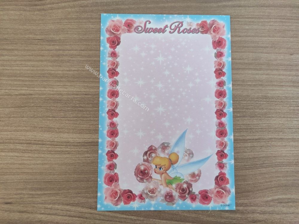 Papel de carta pequeno da Tinker Bell (Sininho), da Disney. TAMANHO DO PAPEL: ALT: 14,5cm - LARG: 10cm
