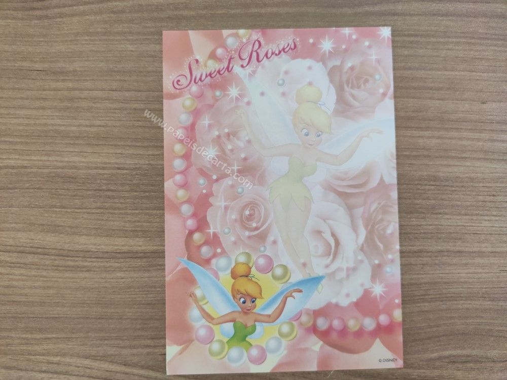 Papel de carta pequeno da Tinker Bell (Sininho), da Disney. TAMANHO DO PAPEL: ALT: 14,5cm - LARG: 10cm