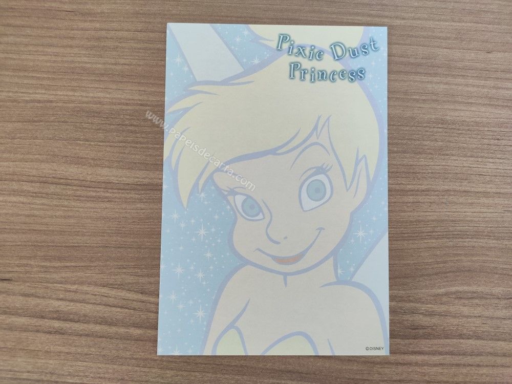 Papel de carta pequeno da Tinker Bell (Sininho), da Disney. TAMANHO DO PAPEL: ALT: 14,5cm - LARG: 10cm