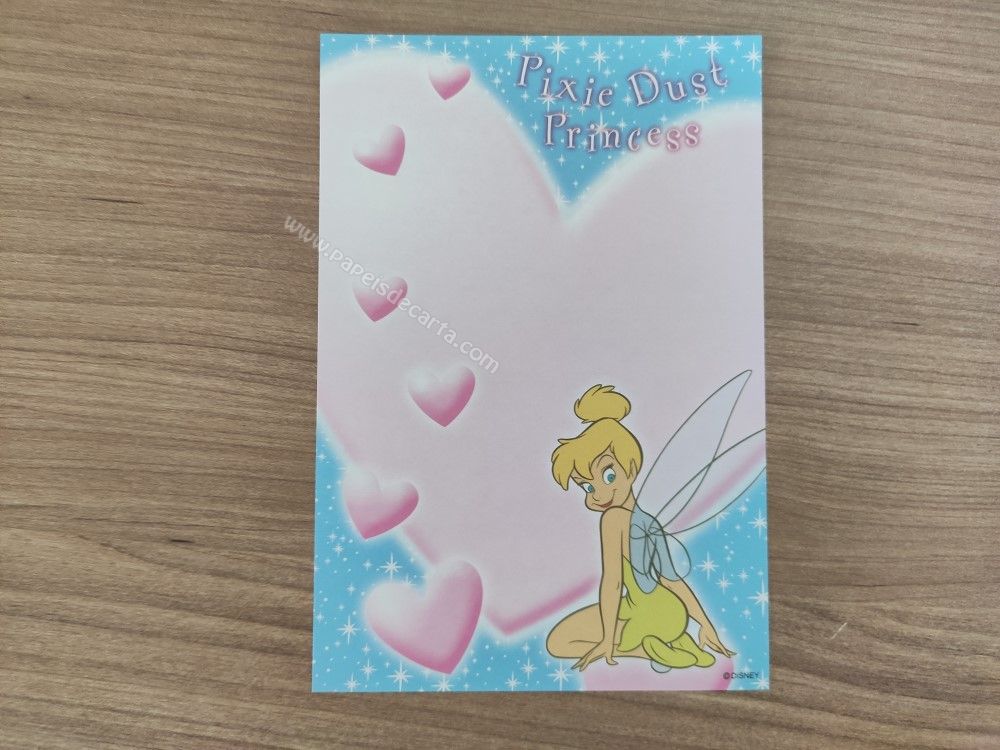 Papel de carta pequeno da Tinker Bell (Sininho), da Disney. TAMANHO DO PAPEL: ALT: 14,5cm - LARG: 10cm