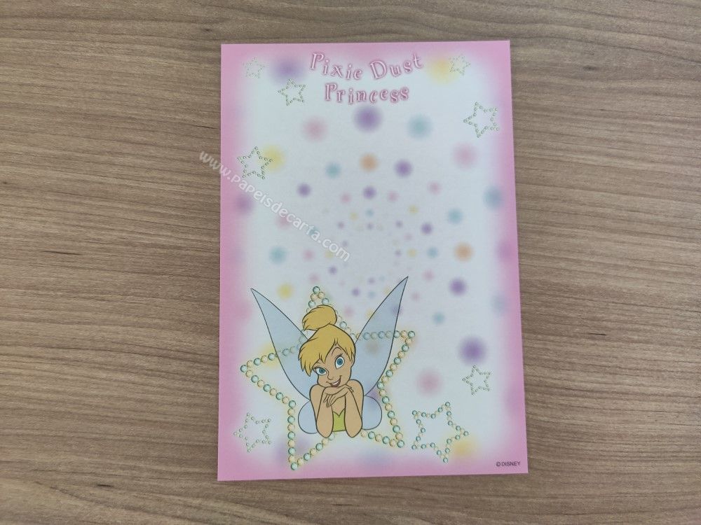 Papel de carta pequeno da Tinker Bell (Sininho), da Disney. TAMANHO DO PAPEL: ALT: 14,5cm - LARG: 10cm