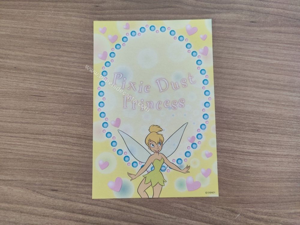 Papel de carta pequeno da Tinker Bell (Sininho), da Disney. TAMANHO DO PAPEL: ALT: 14,5cm - LARG: 10cm