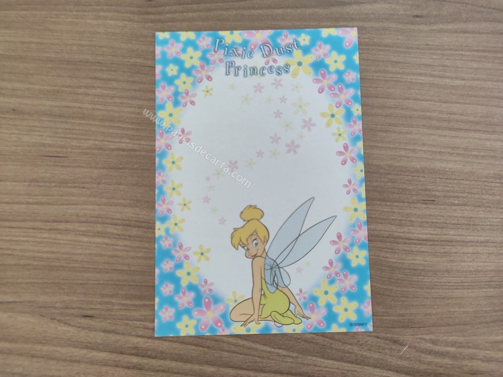 Papel de carta pequeno da Tinker Bell (Sininho), da Disney. TAMANHO DO PAPEL: ALT: 14,5cm - LARG: 10cm
