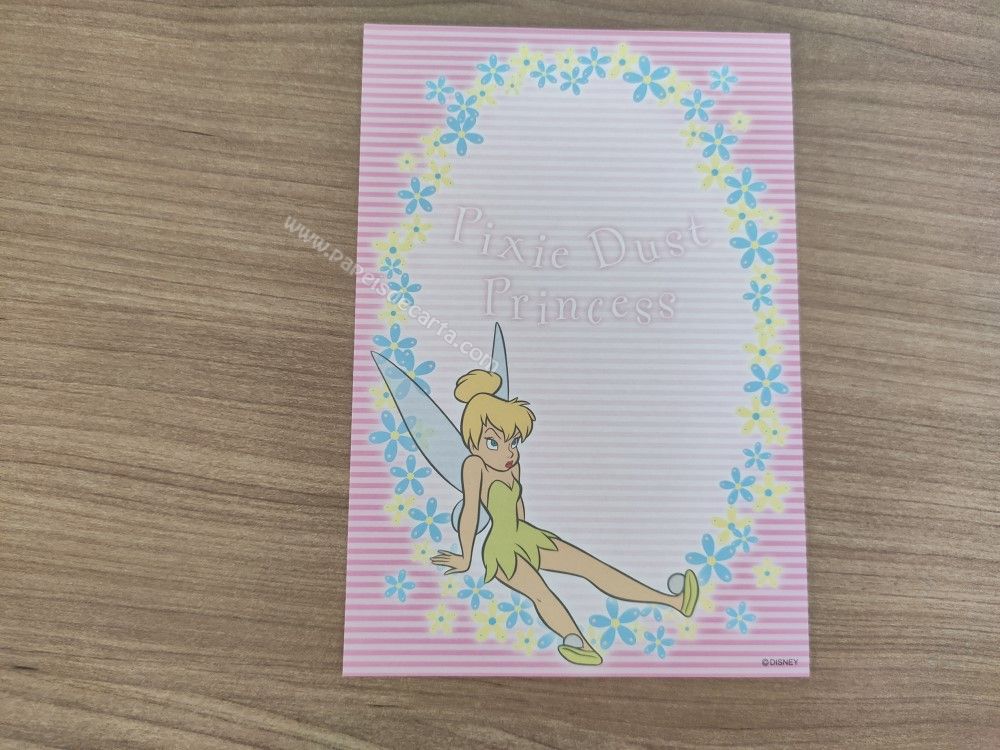 Papel de carta pequeno da Tinker Bell (Sininho), da Disney. TAMANHO DO PAPEL: ALT: 14,5cm - LARG: 10cm