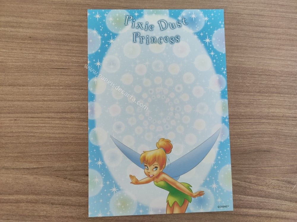 Papel de carta pequeno da Tinker Bell (Sininho), da Disney. TAMANHO DO PAPEL: ALT: 14,5cm - LARG: 10cm