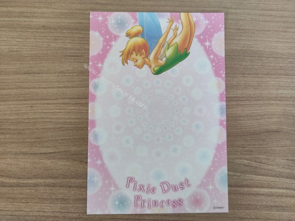 Papel de carta pequeno da Tinker Bell (Sininho), da Disney. TAMANHO DO PAPEL: ALT: 14,5cm - LARG: 10cm