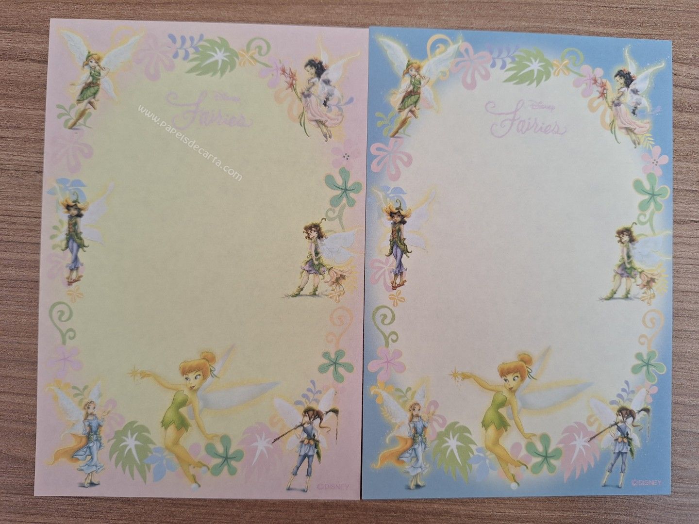 Lote com 02 papéis de carta tamanho pequeno da Fairies, da Disney. TAMANHO DO PAPEL: ALT: 14,5cm - LARG: 10cm