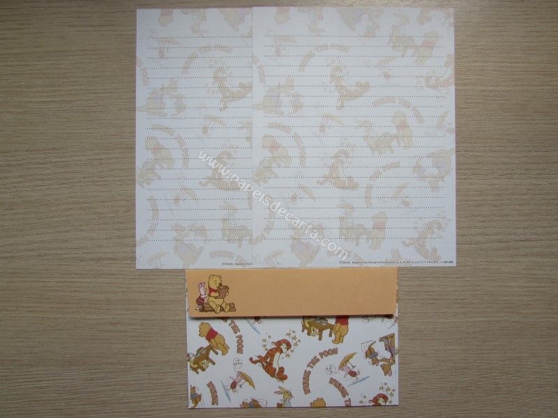 Conjunto importado, de papel de carta do Pooh, com 2 folhas iguais, 1 envelope e 1 notinha, da Disney.