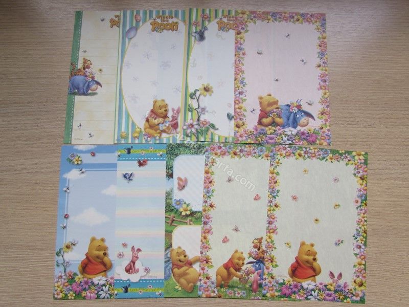 Lote com 9 papéis pequenos importados do Ursinho Pooh e sua turma.
