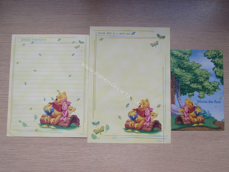 Conjunto com 2 folhas e 1 envelope do Pooh 68