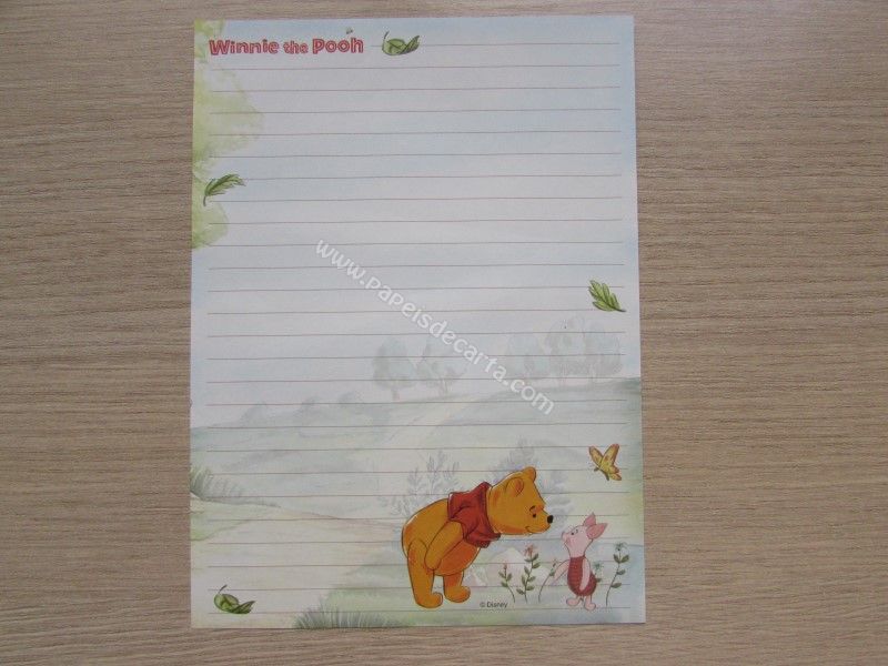 Conjunto importado, de papel de carta do Pooh, tamanho médio, com 1 folha e 1 envelope, da Disney.