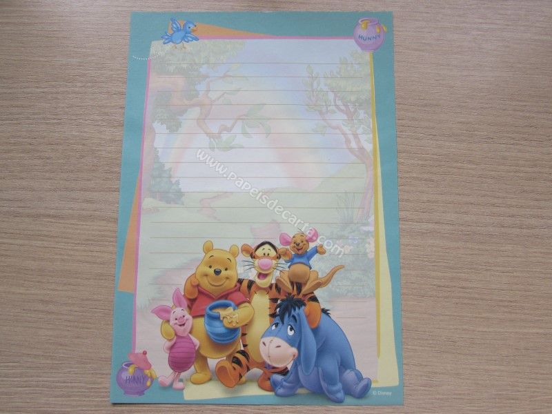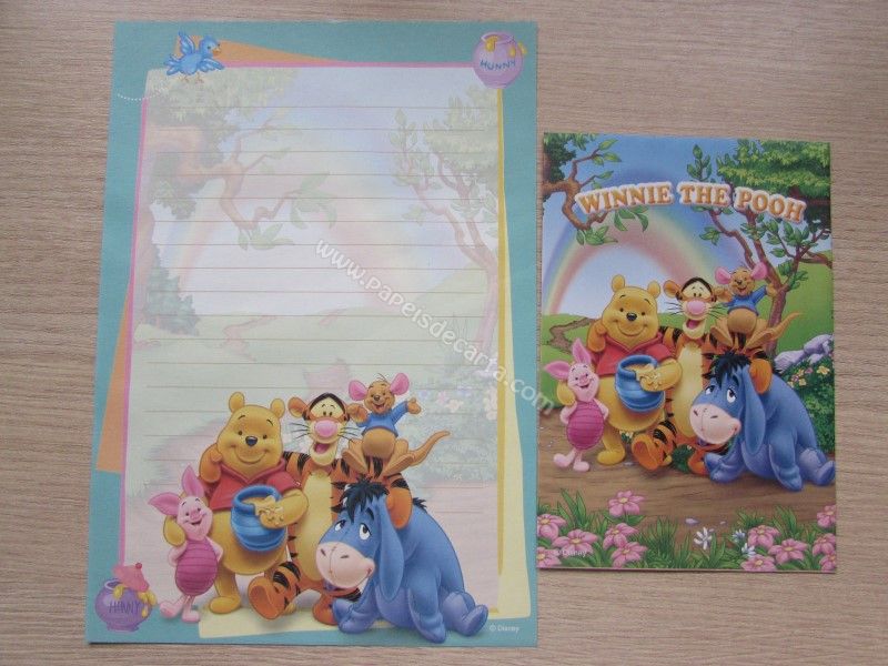 Conjunto importado, de papel de carta do Pooh, tamanho médio, com 1 folha e 1 envelope, da Disney.