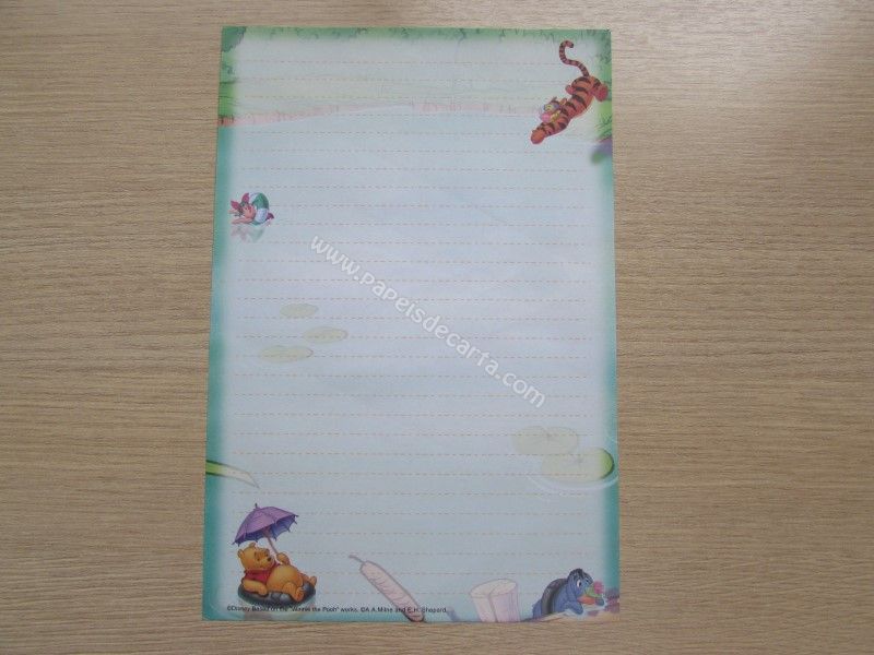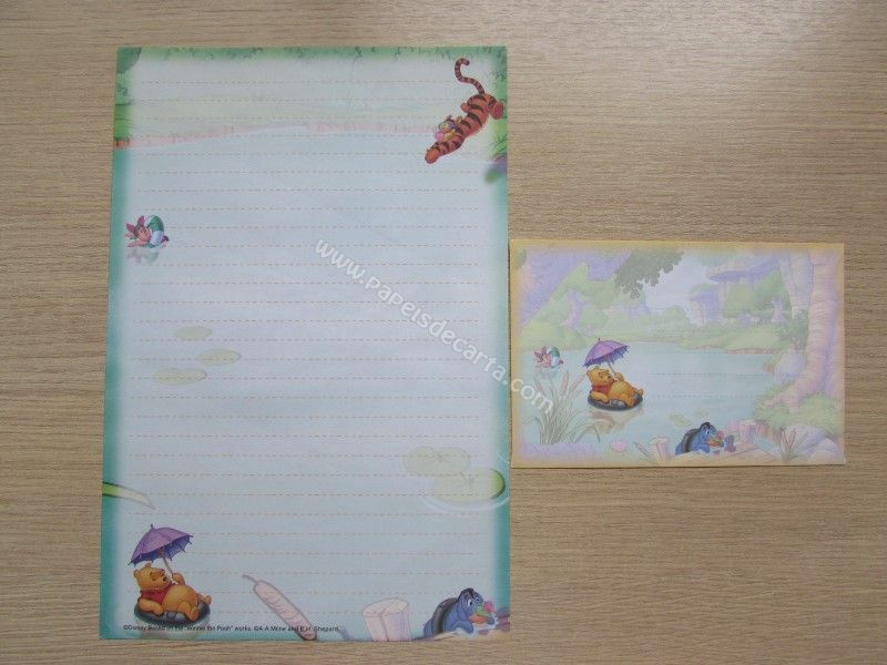 Conjunto importado, de papel de carta do Pooh, tamanho um pouco maior que o médio, com 1 folha e 1 envelope, da Disney.