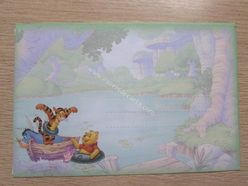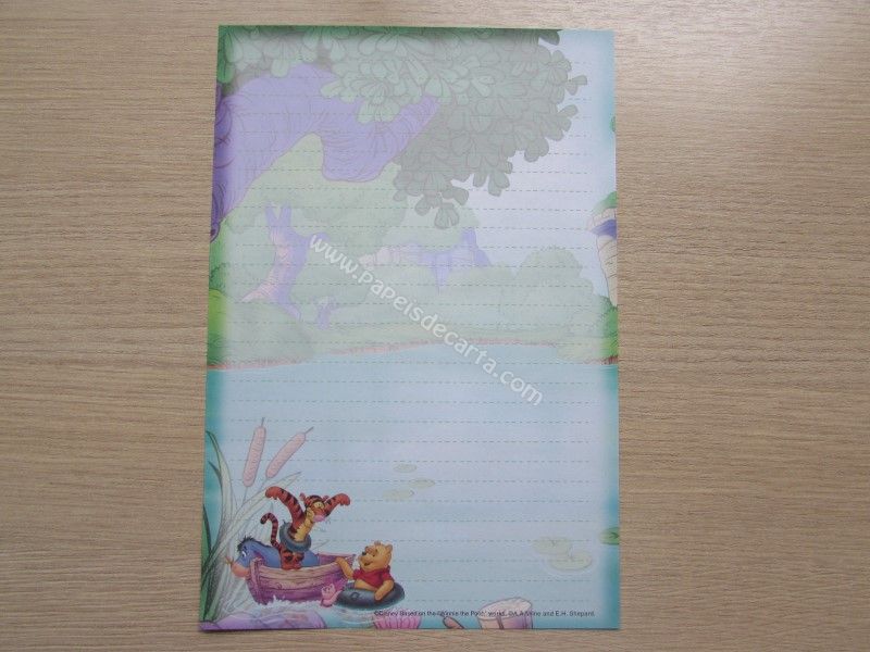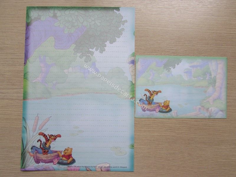 Conjunto importado, de papel de carta do Pooh, tamanho um pouco maior que o médio, com 1 folha e 1 envelope, da Disney.