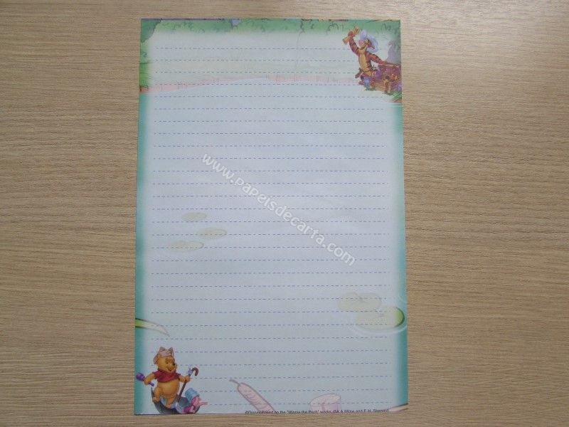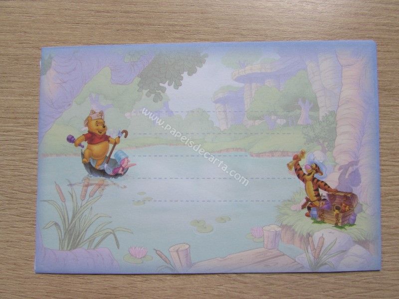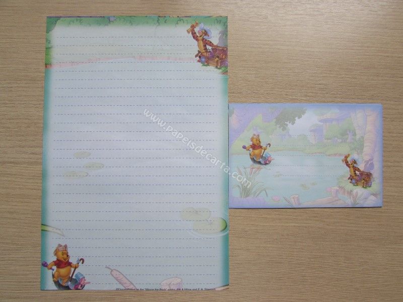 Conjunto importado, de papel de carta do Pooh, tamanho um pouco maior que o médio, com 1 folha e 1 envelope, da Disney.