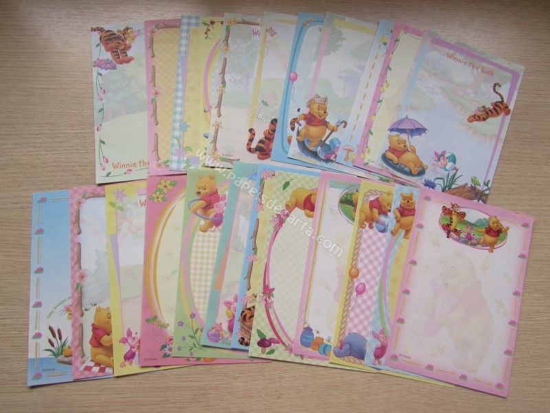 Lote com 23 papéis pequenos importados do Ursinho Pooh e sua turma.