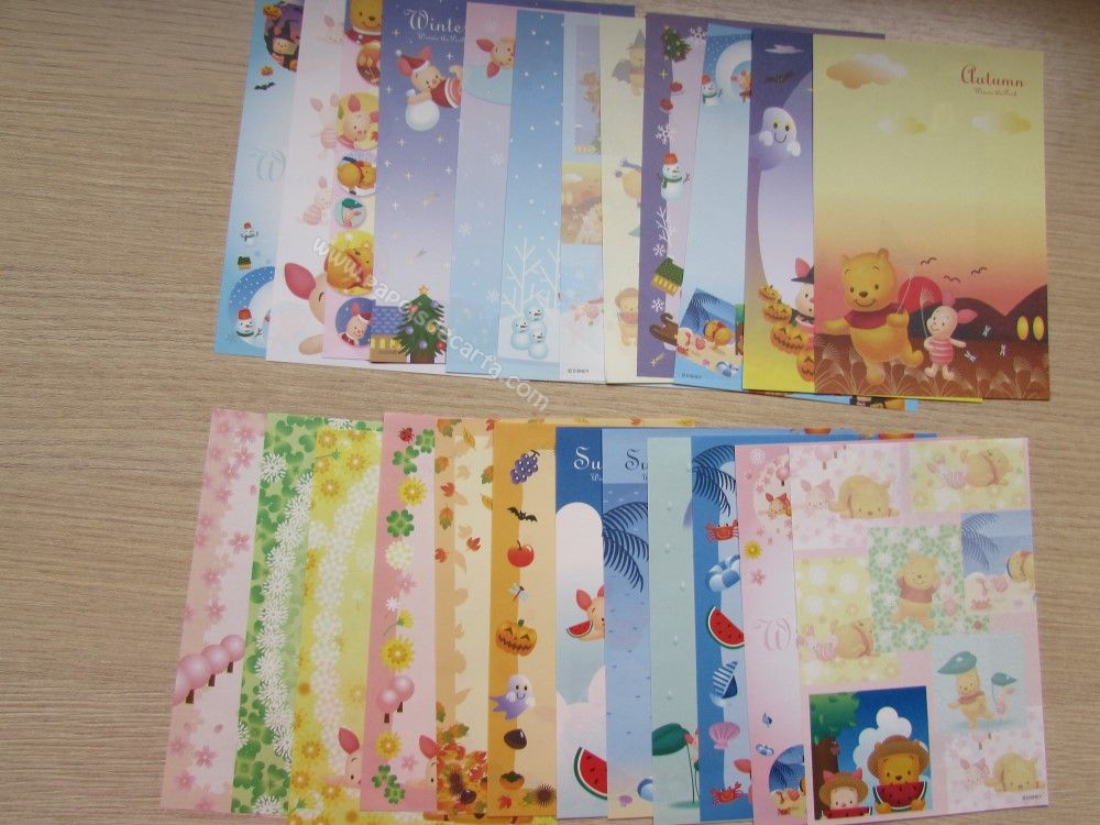 Lote com 24 papéis pequenos importados do Ursinho Pooh e sua turma.